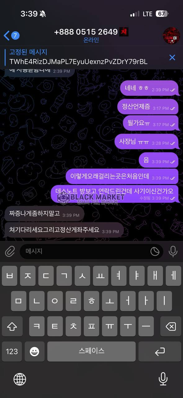 정산은 끝내 이행하지 않고 차단/잠수로 종료