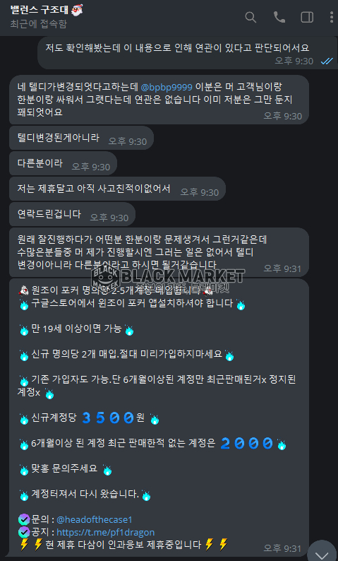- “본 계정은 정상적으로 제휴 및 밸런스 작업만 진행 중이며, 고객과의 분쟁으로 인해 연관되었을 뿐 사기행위는 없다.”