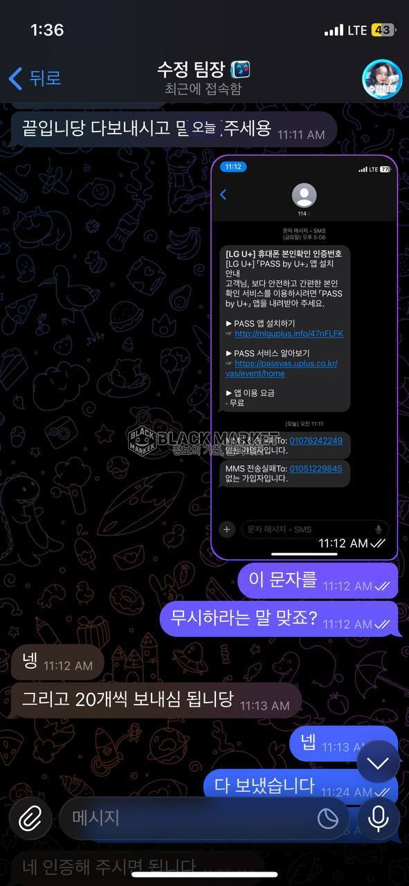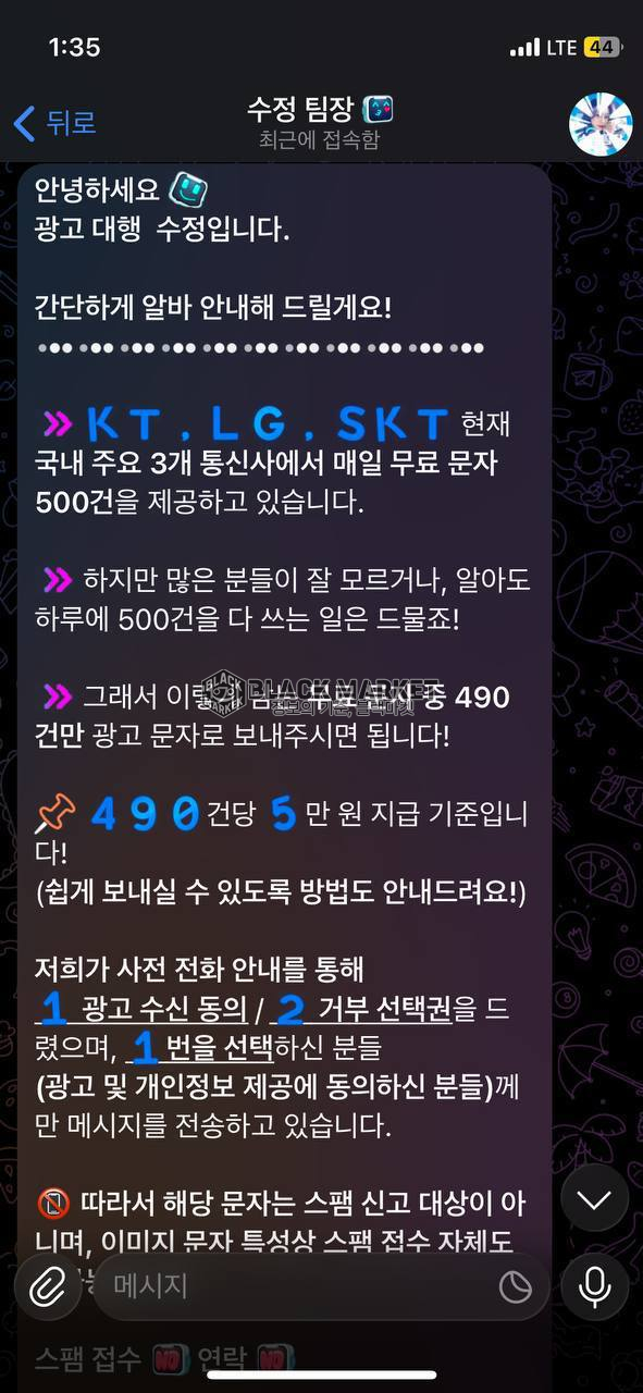 [마케팅] 문자 발송 아르바이트 사기 - 수정팀장