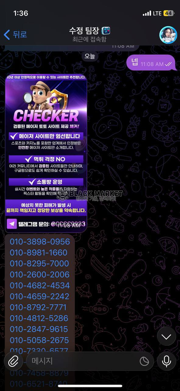 - 문자 내용: 토토 홍보 이미지 ‘CHECKER’ 광고
