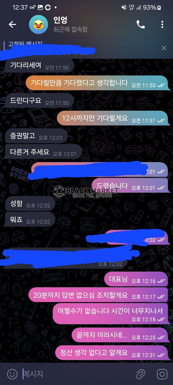 [명의&계정] 카톡 실계 매입 정산 먹튀 - 인영