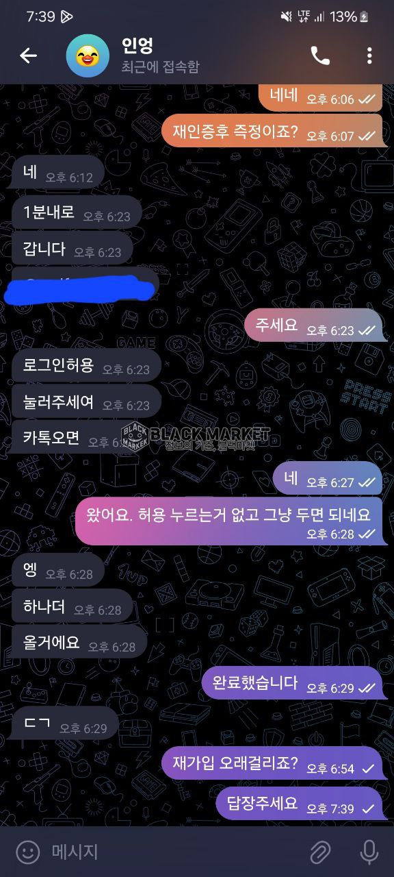 🔹 [계정 매입 사기] 인영 텔레그램 실계정 재인증 먹튀