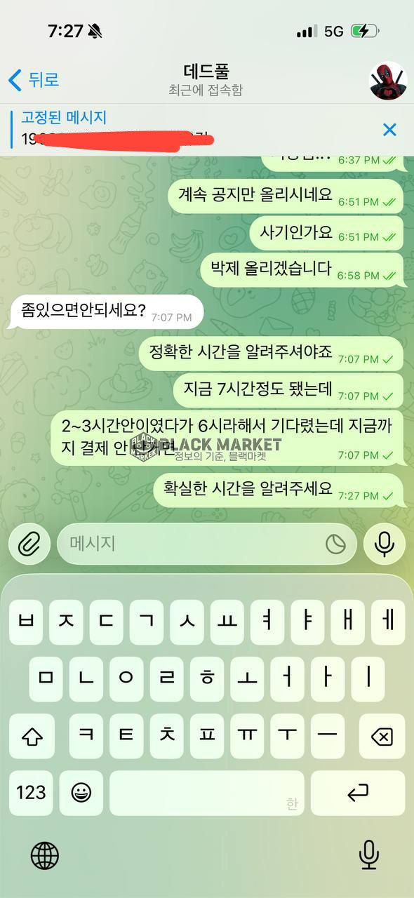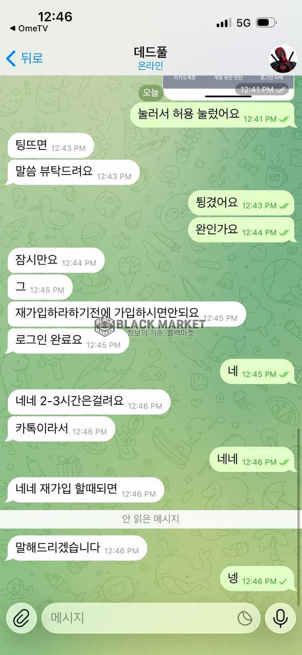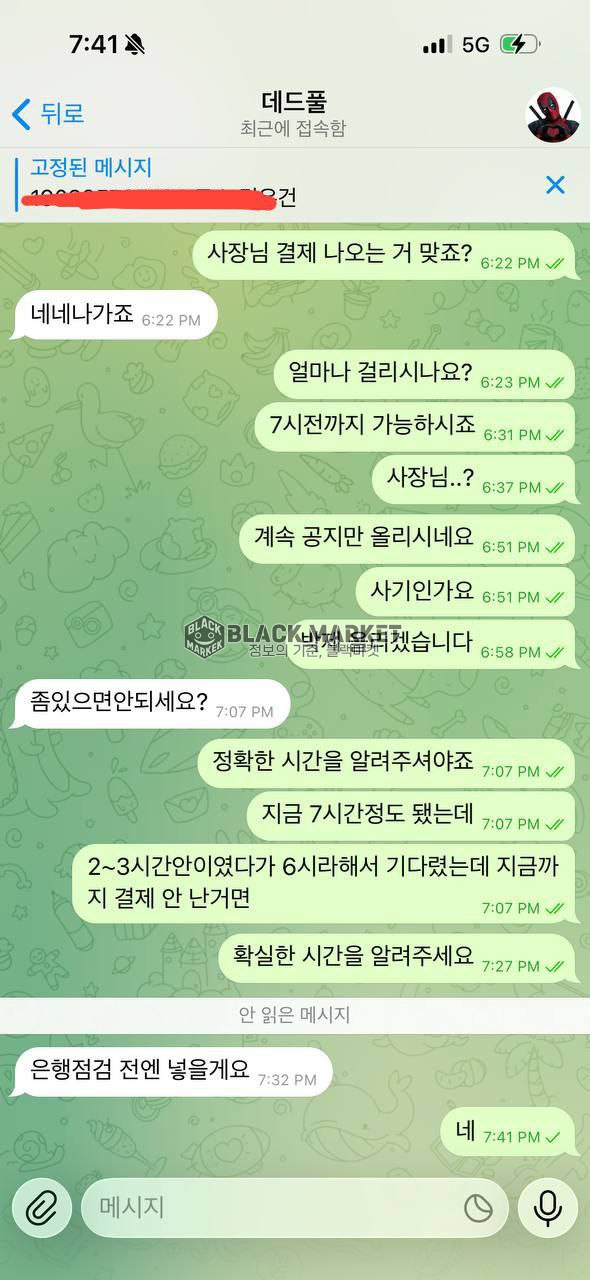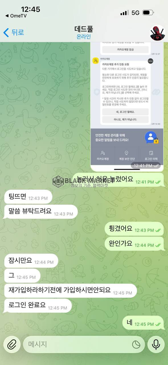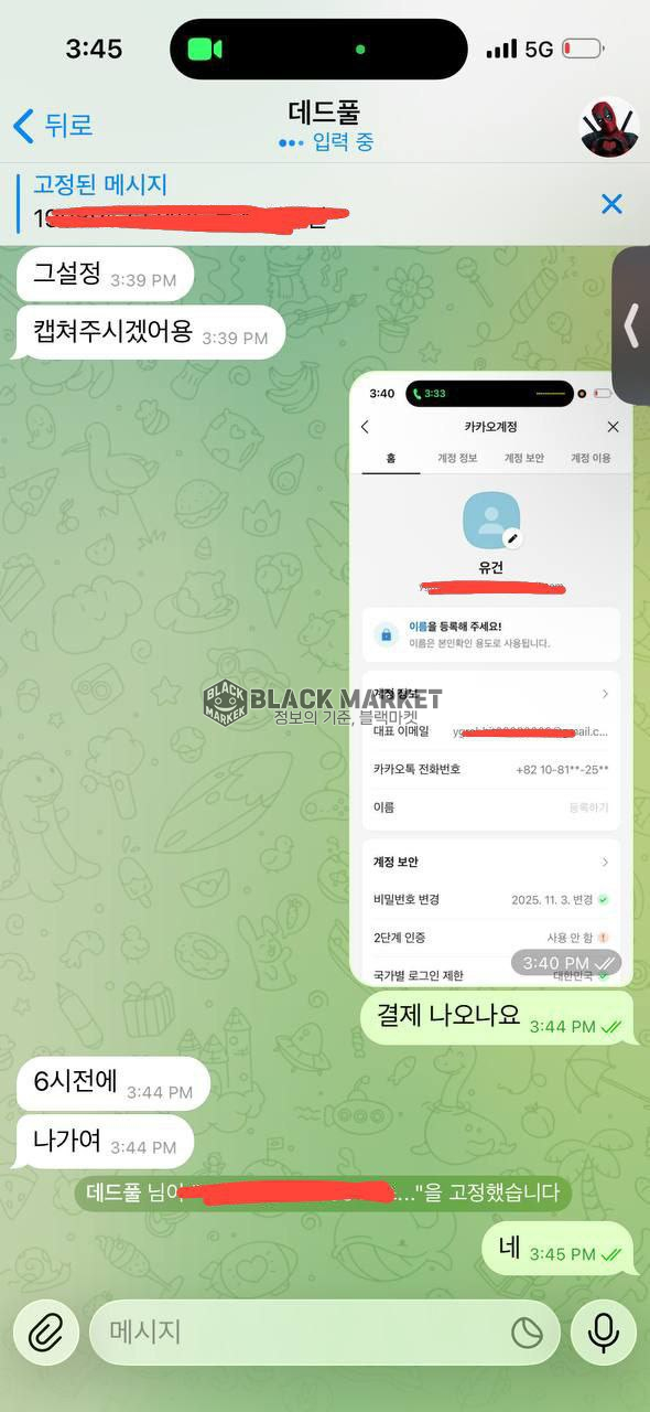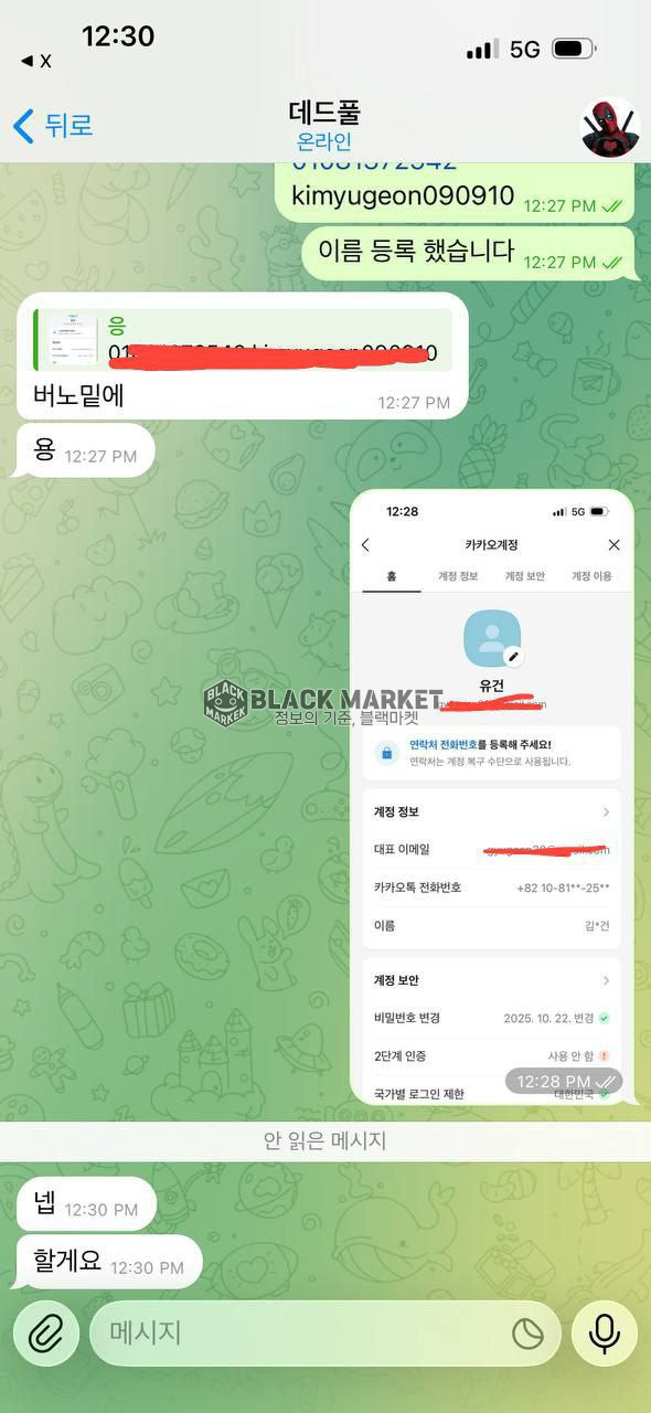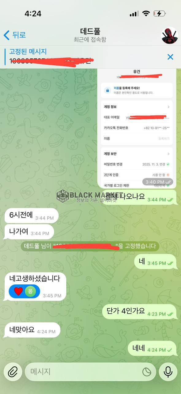 [명의&계정] 카톡 실계 매입 정산 먹튀 - 데드풀
