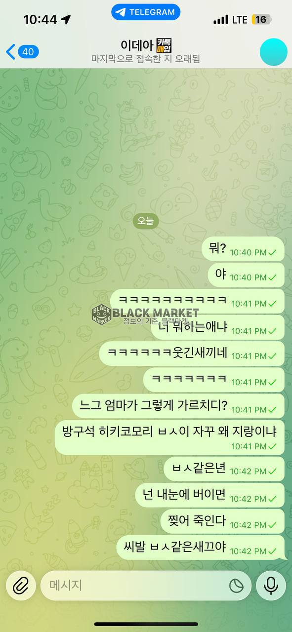 그리고 오늘 10시경 연락을 하였는데 욕을 박으며 대화창을 밀고 차단했습니다