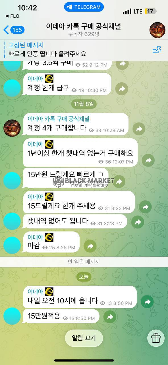 채널명: 이데아 카톡 구매 공식채널 (구독자 약 629명)