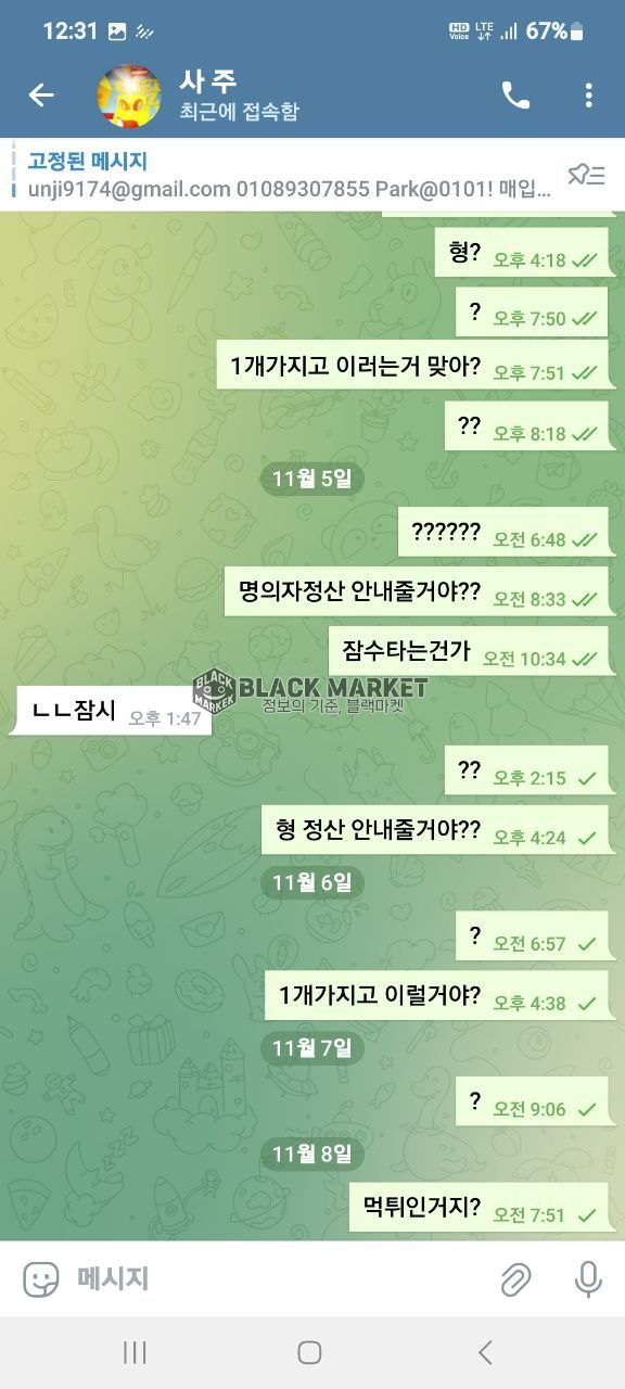피해자는 텔레그램 사용자 ‘사주’와 실계 거래를 진행하였으며,