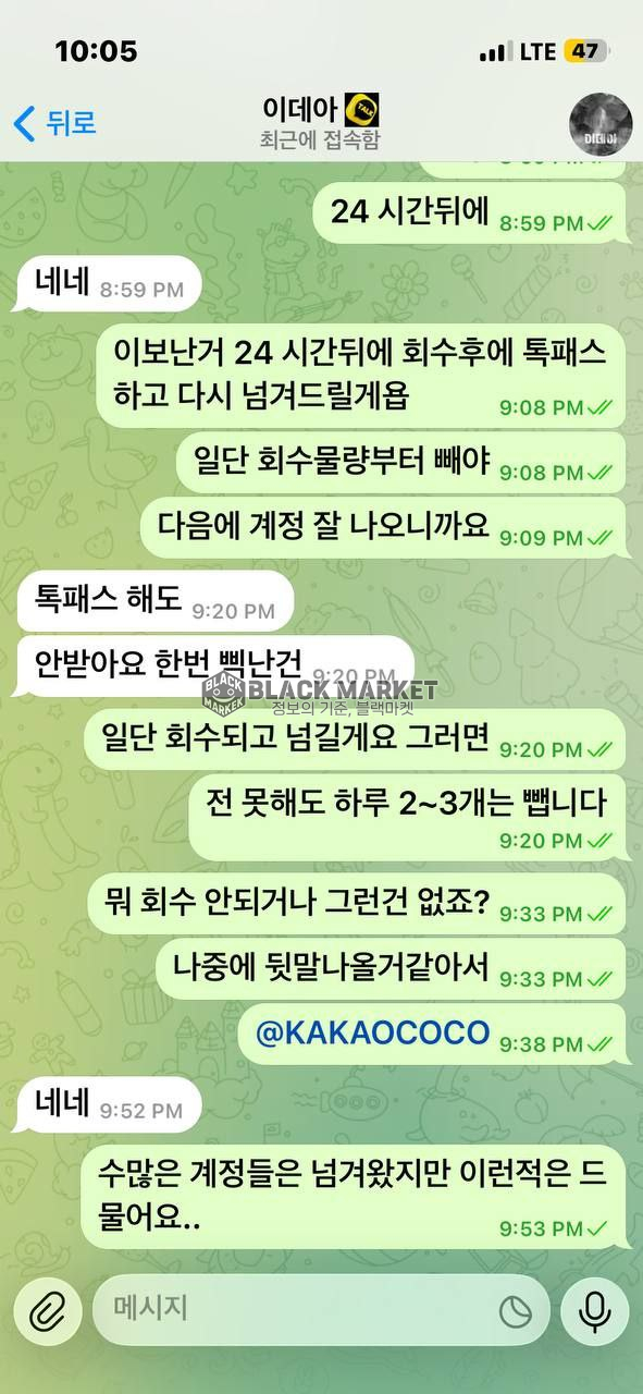 🔹 [계정거래 사기] 텔레그램 ‘이데아’ 계정 먹튀 제보