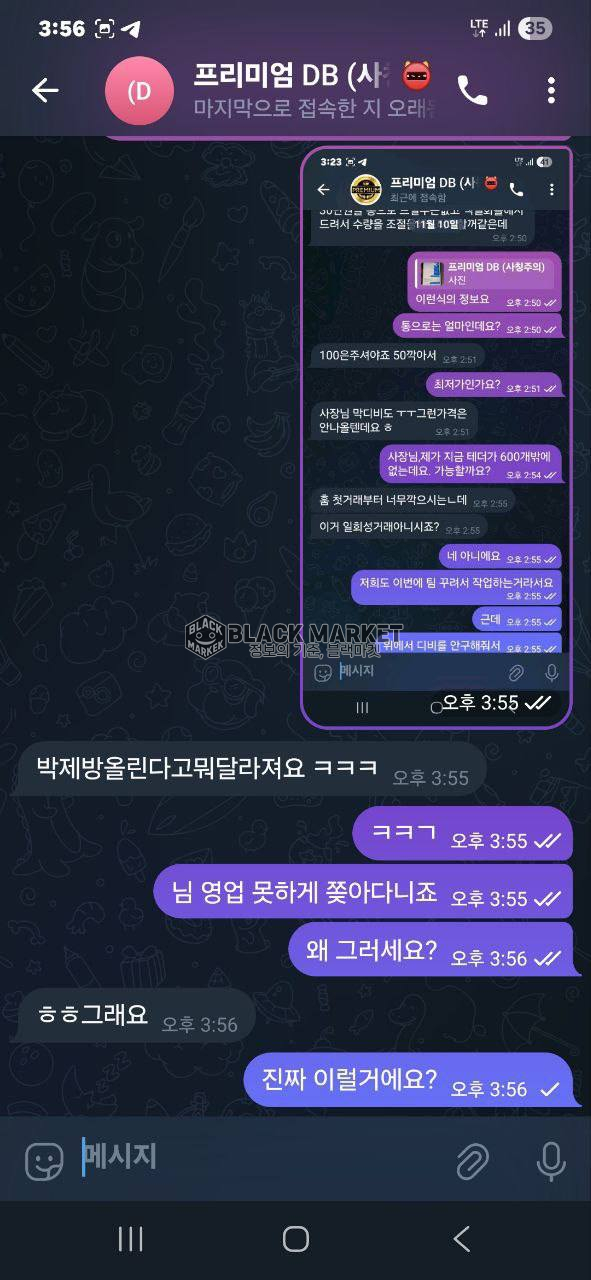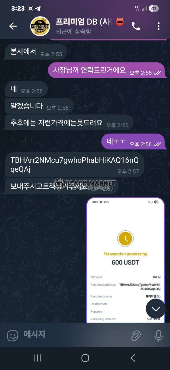 ⚠️ 블랙마켓 - '프리미엄DB'의 이전 사기 이력 조회(8월 25일)