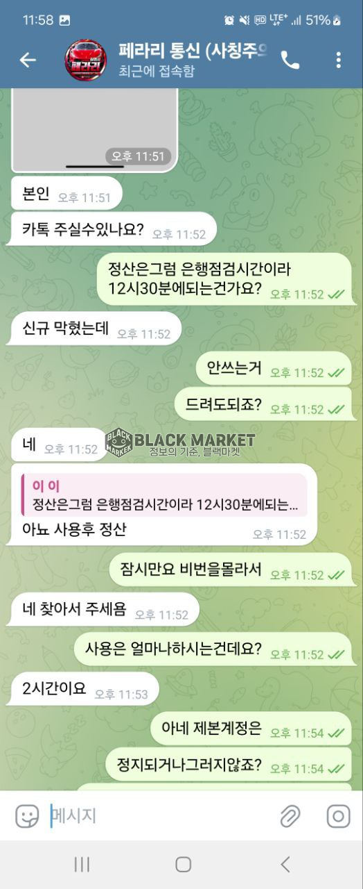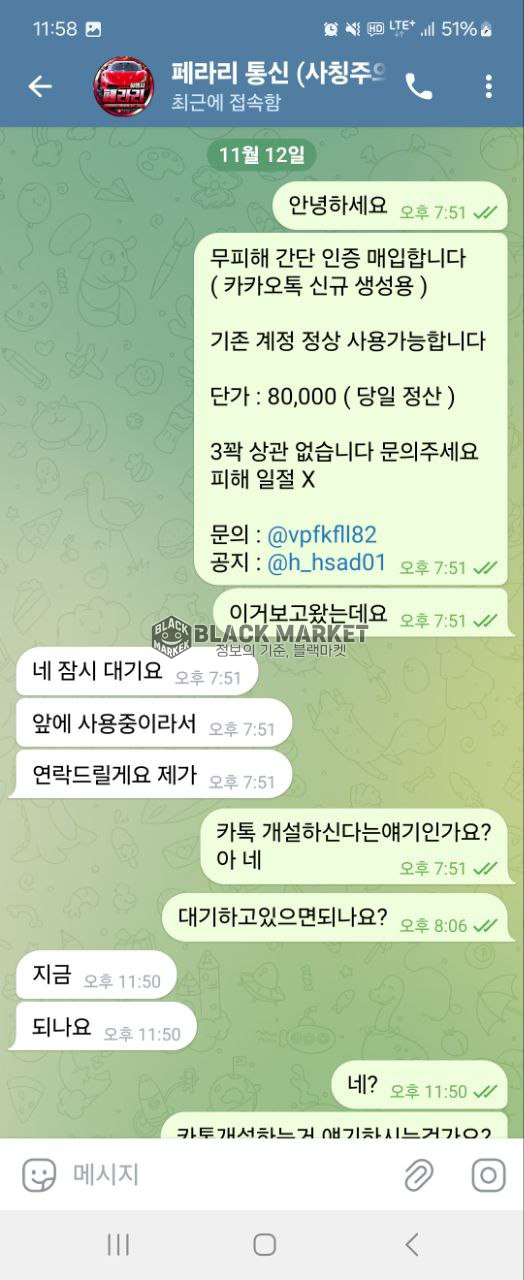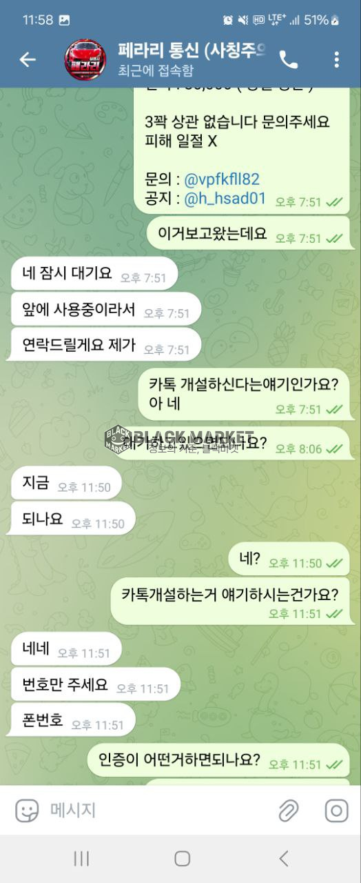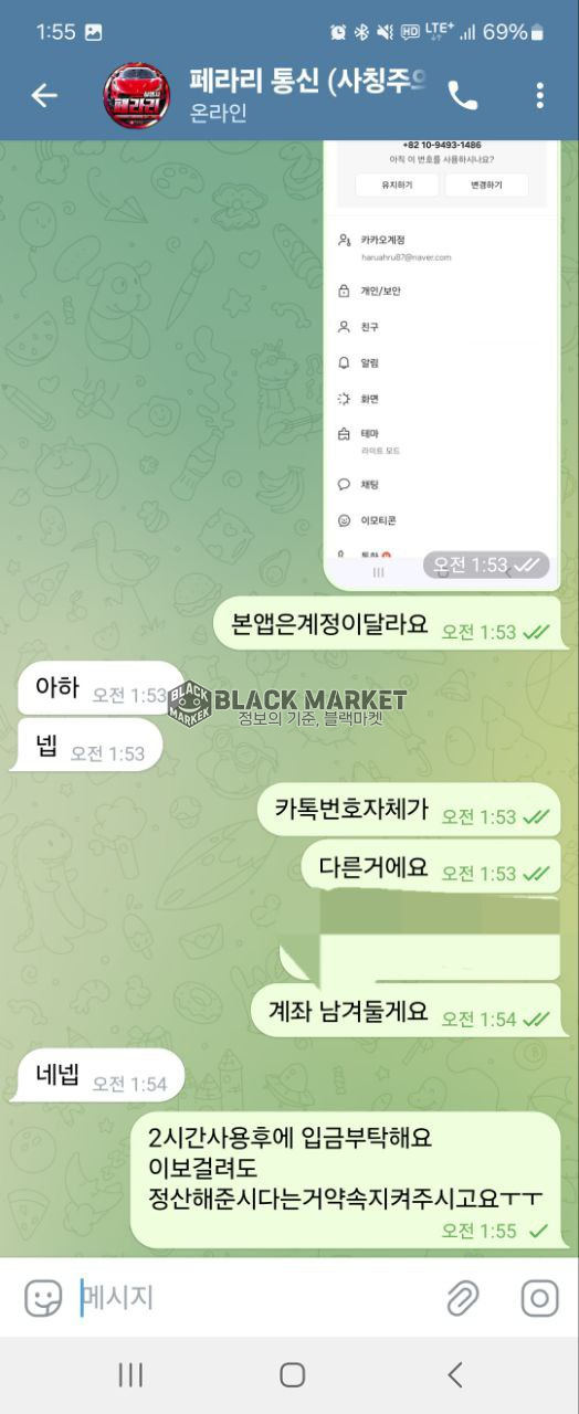 [명의&계정] 카톡 계정 매입 먹튀 - 페라리 통신 (누적 5회)