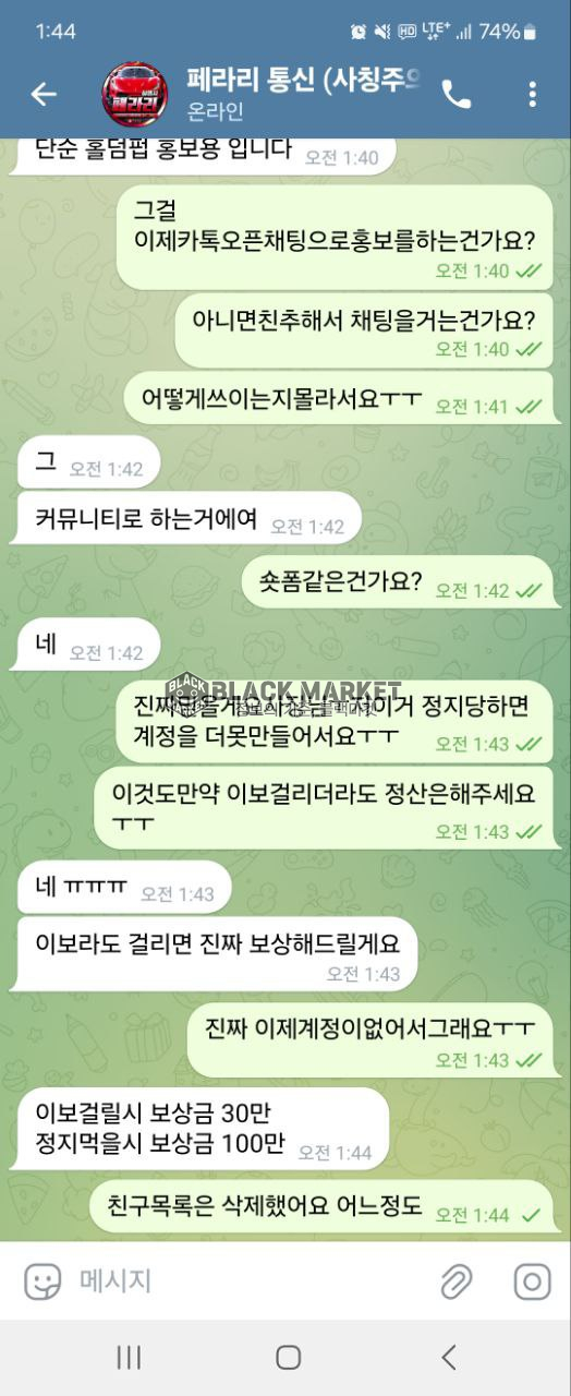 ⚠️ 블랙마켓 - '페라리 통신'의 이전 사기 이력 조회