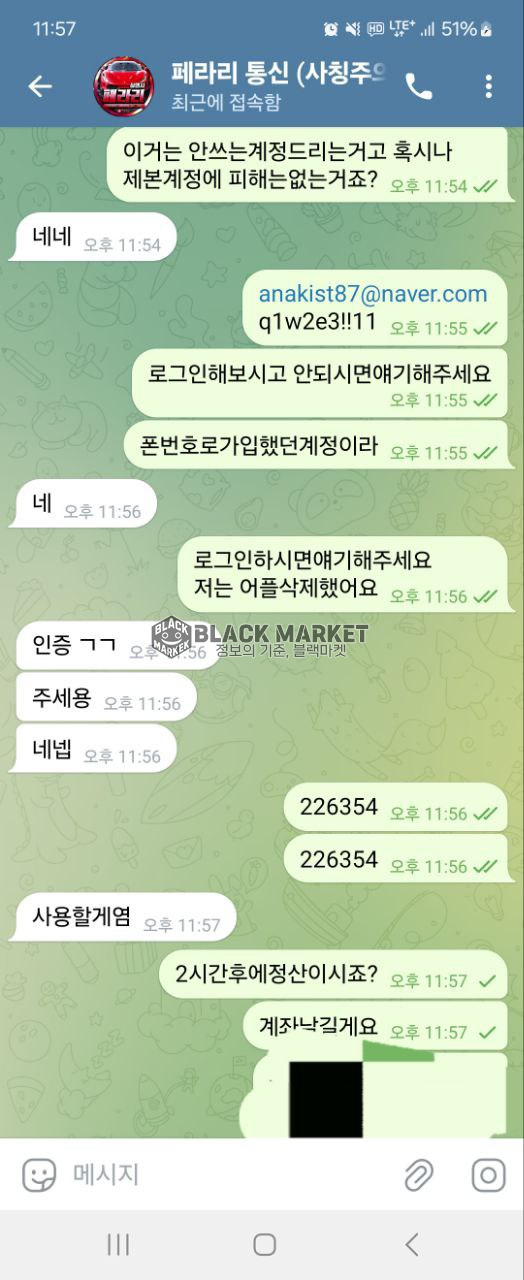 카톡 계정 매입 먹튀 - 페라리 통신 (누적 5회) > 사기피해