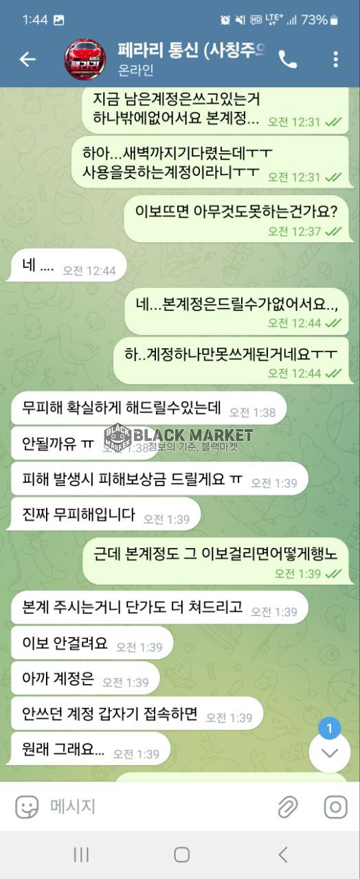 - “이보 걸리면 보상해준다”라는 말로 안심시키는 전형적 유심/계정 사기 패턴
