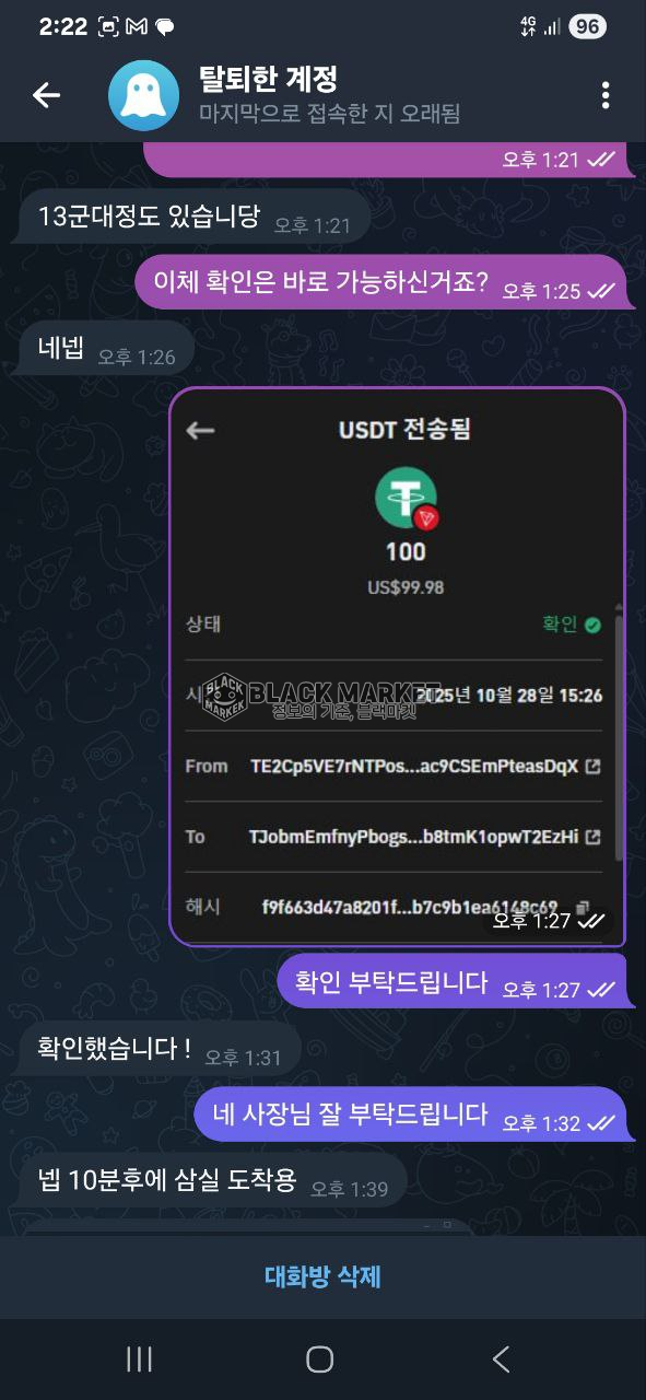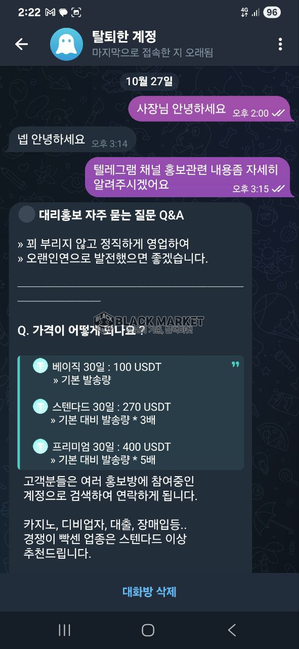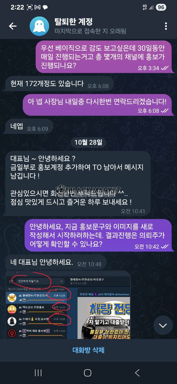 - 텔레그램 대리홍보 의뢰 및 결제 후 잠적