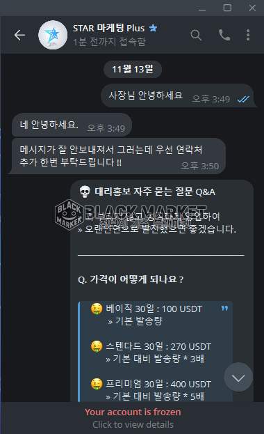[마케팅] 텔레그램 대리홍보 사기 - OWENHAN · StarADPlus