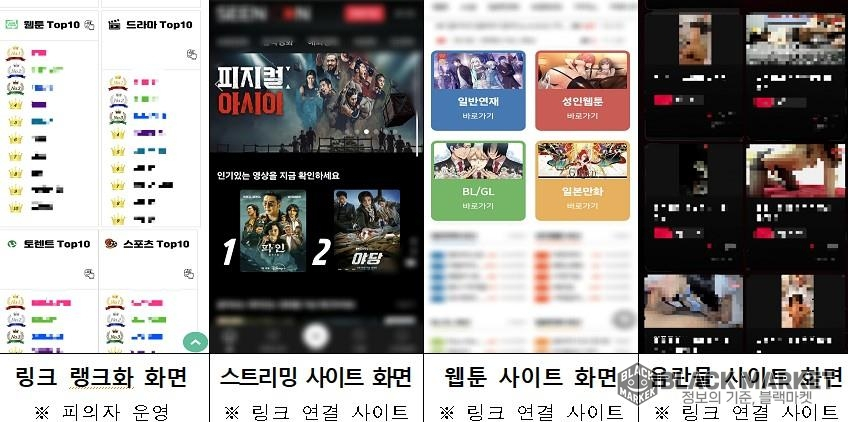 불법 영상 및 웹툰 콘텐츠를 제공하는 저작권 침해 사이트 집합 운영